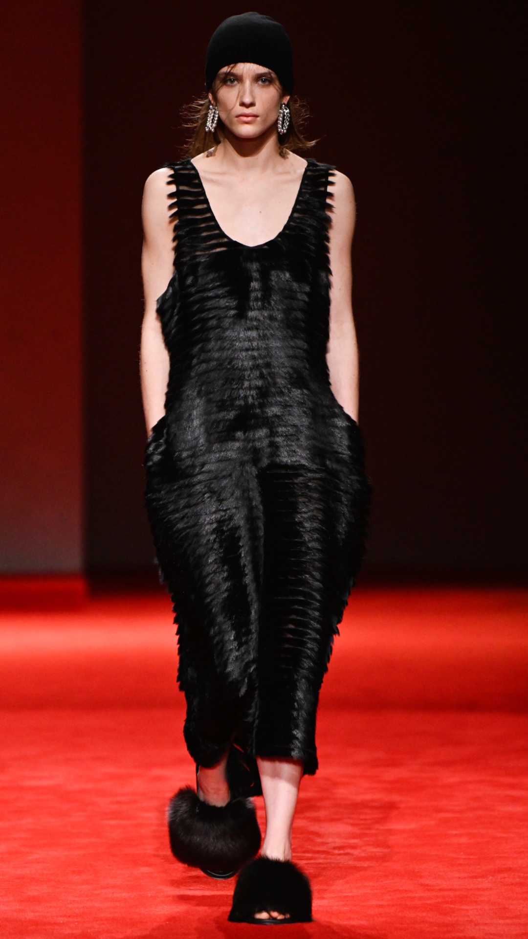 Η Trotter έστειλε 80 μοντέλα να διασχίσουν ένα κατακόκκινο χαλί με ιλιγγιώδη ταχύτητα, κάνοντας μεταξένιες κλωστές, ανακυκλωμένο υαλοβάμβακα, υφάσματα fil coupé, χνουδωτά πλεκτά και χειροποίητα βαμμένα δέρματα shearling να αναπηδούν και να κυματίζουν. Για τους λάτρεις της καινοτομίας στα υφάσματα, αυτό ήταν το δικό τους «Super Bowl».