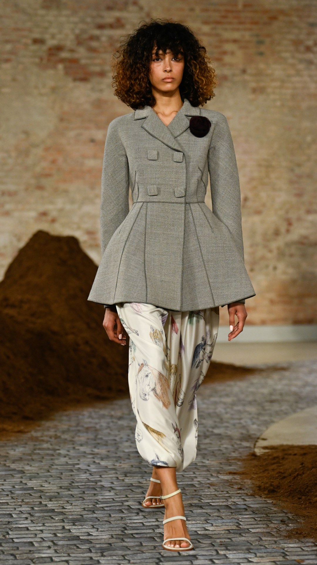 Η Trotter αφιέρωσε επίσης ένα μεγάλο μέρος της επίδειξης στο γλυπτικό και πληθωρικό της tailoring. Τα σακάκια ήταν μακριά, με έντονους, στρογγυλεμένους ώμους και φουσκωτά μανίκια. Πολλά ήταν σχεδιασμένα να ανοίγουν προς τα έξω, αποκαλύπτοντας κοντές φούστες με πιέτες ή φαρδιά, ανδρόγυνα παντελόνια.