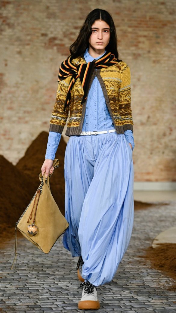 • Στον οίκο Bottega Veneta, η Louise Trotter παρουσίασε ένα «Super Bowl» υφών, αντικαθιστώντας το κλασικό δέρμα με μια συγκλονιστική ποικιλία από «τριχωτές» επιφάνειες και γλυπτικό tailoring.