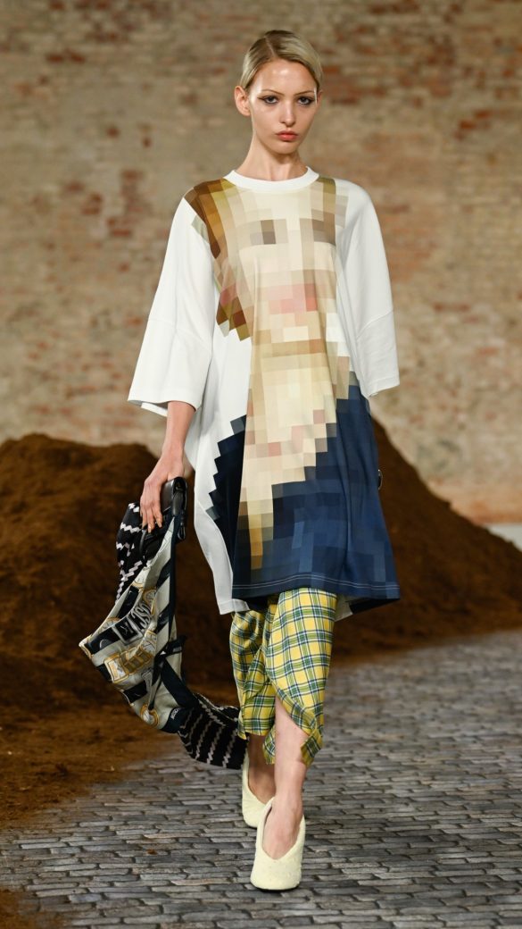 • Τέλος, ο οίκος Moschino έγινε το όχημα για μια προσωπική «κραυγή» του Adrian Appiolaza προς την πατρίδα του την Αργεντινή, αποδεικνύοντας ότι το χιούμορ και οι κοινωνικές αναφορές παραμένουν στον πυρήνα της ταυτότητας του brand.