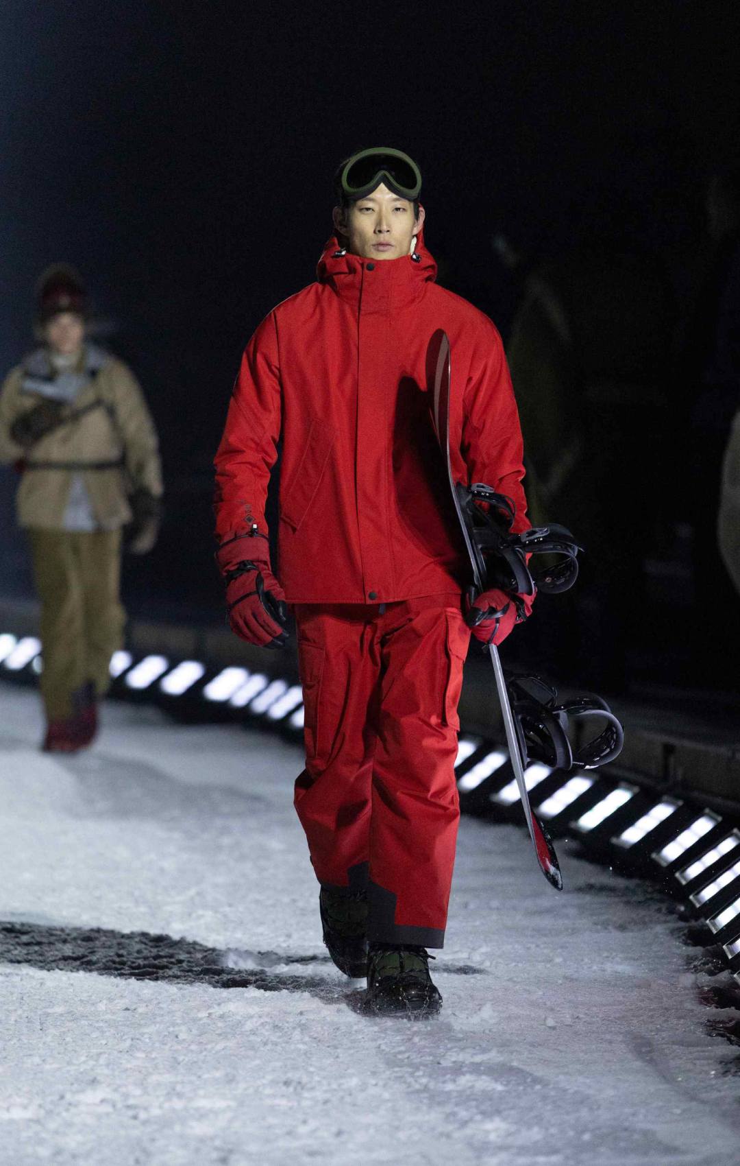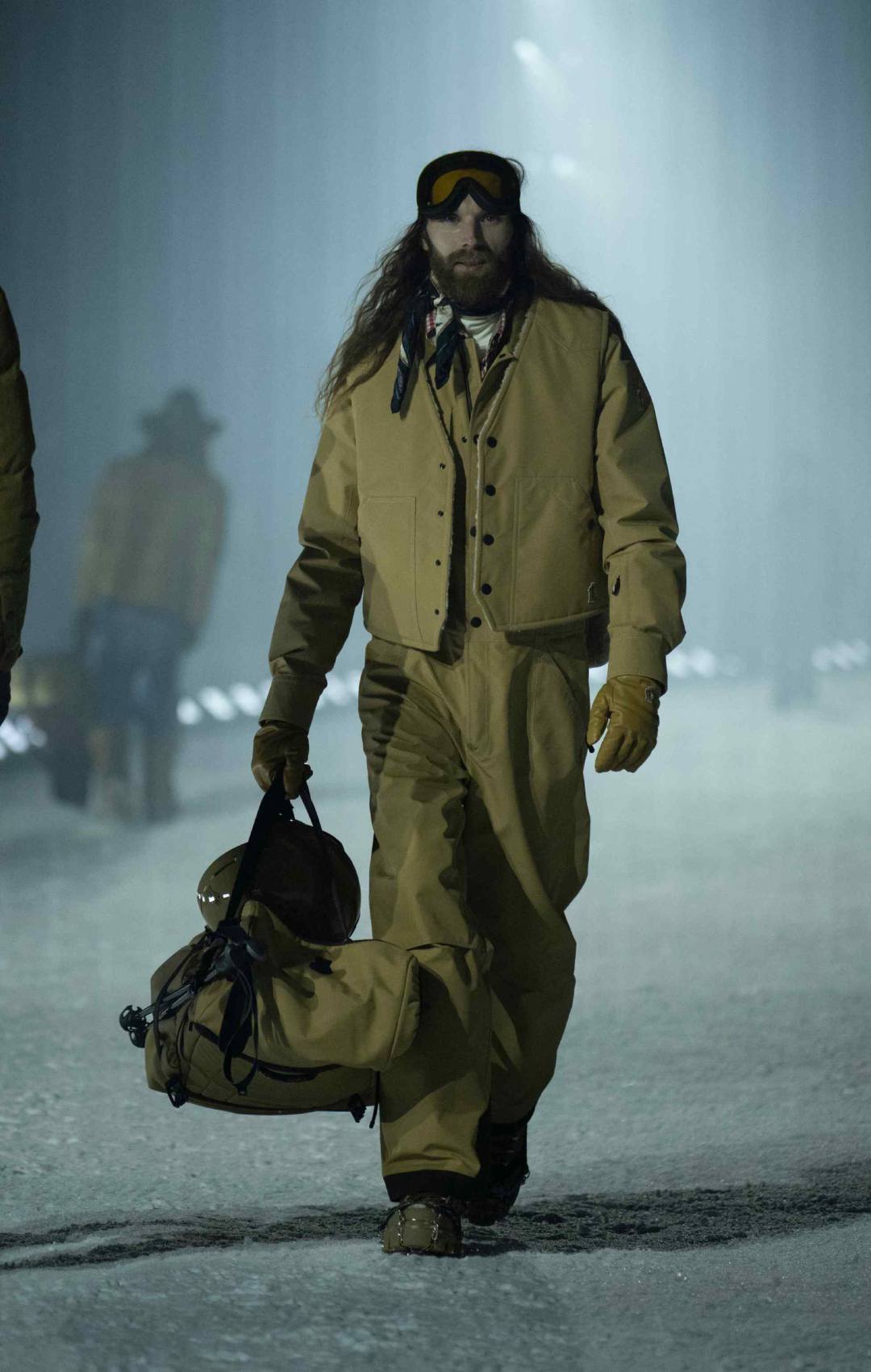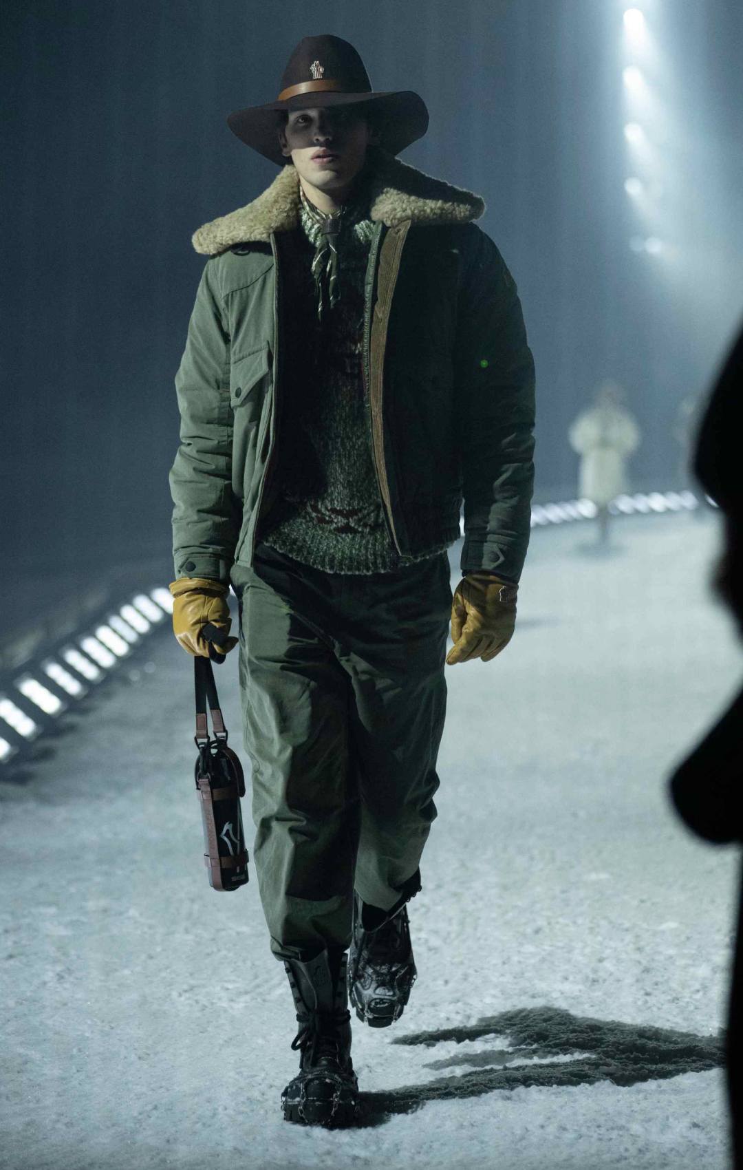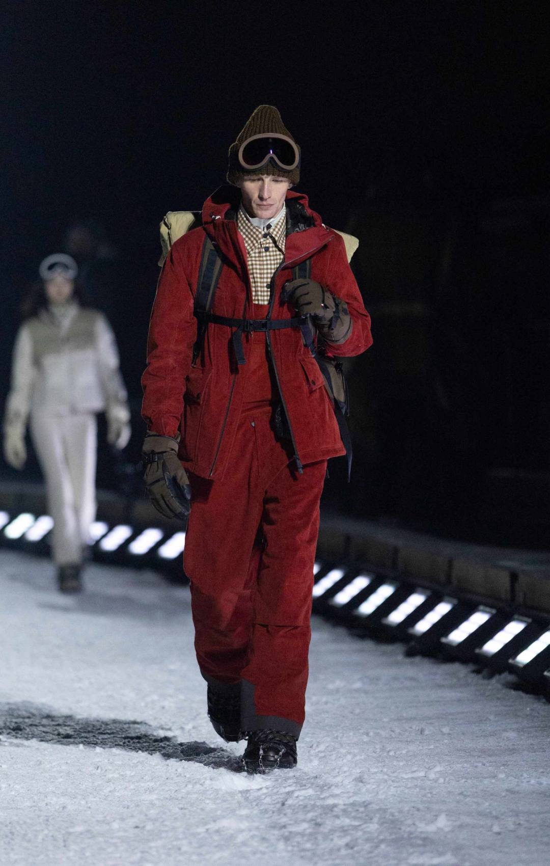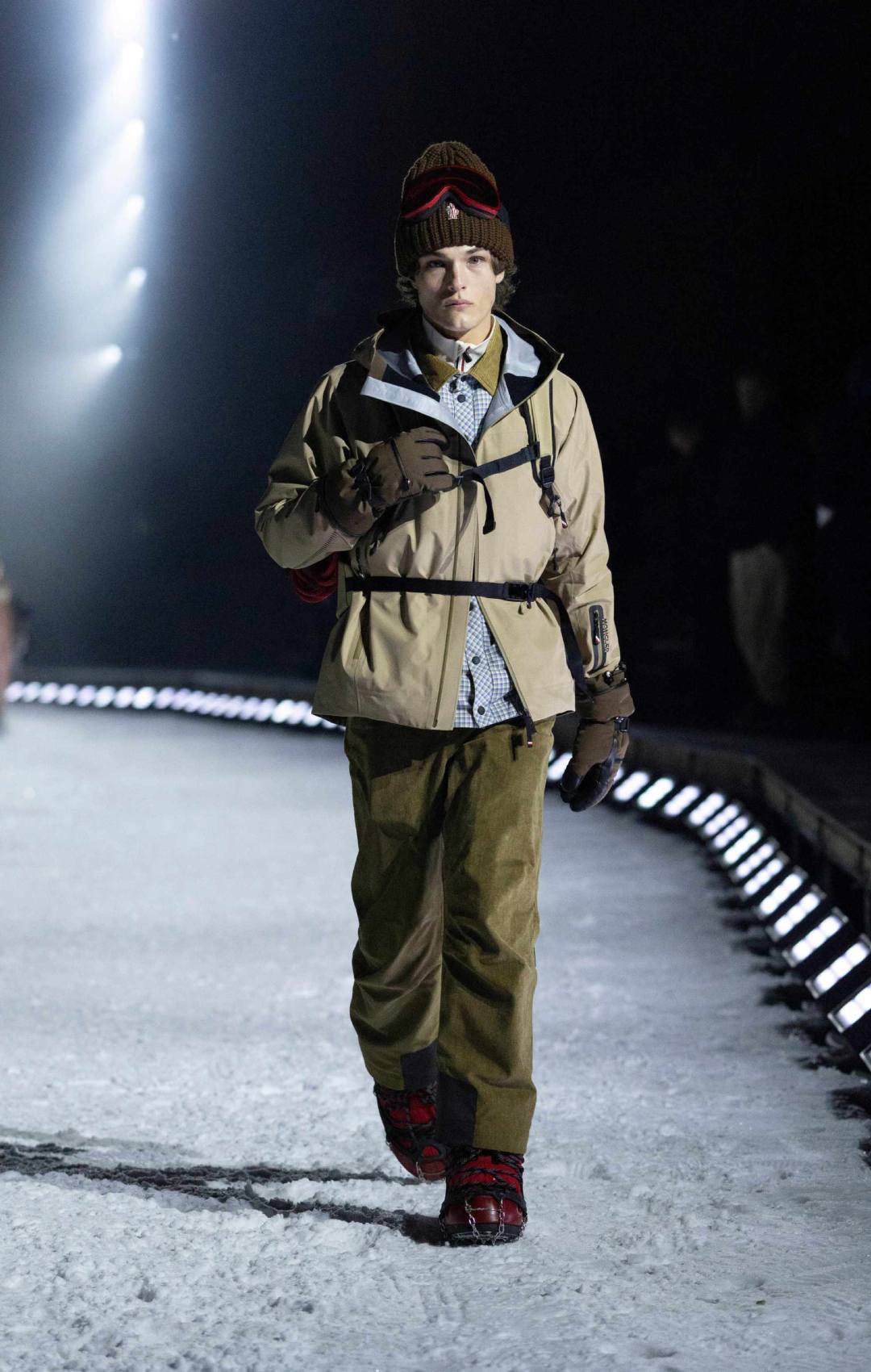 Η επίδειξη έλαβε χώρα κάτω από το έντονο φως της πανσελήνου. Οι καλεσμένοι χρειάστηκαν περίπου 15 λεπτά με το αυτοκίνητο από το κέντρο του Άσπεν για να φτάσουν σε μια περιοχή κάτω από το βουνό, όπου και έκαναν check-in, παραλαμβάνοντας καφέ καπιτονέ κάπες Moncler σε chocolate brown απόχρωση, πλεκτά σκουφάκια και γάντια, καθώς η θερμοκρασία ήταν μόλις γύρω στους 15 βαθμούς Fahrenheit.