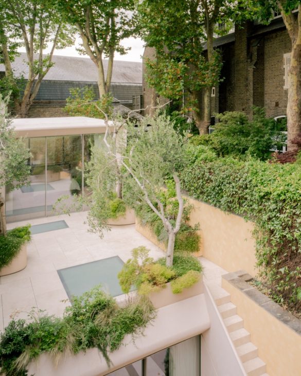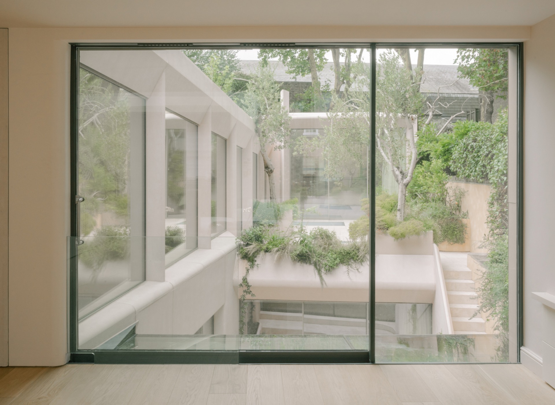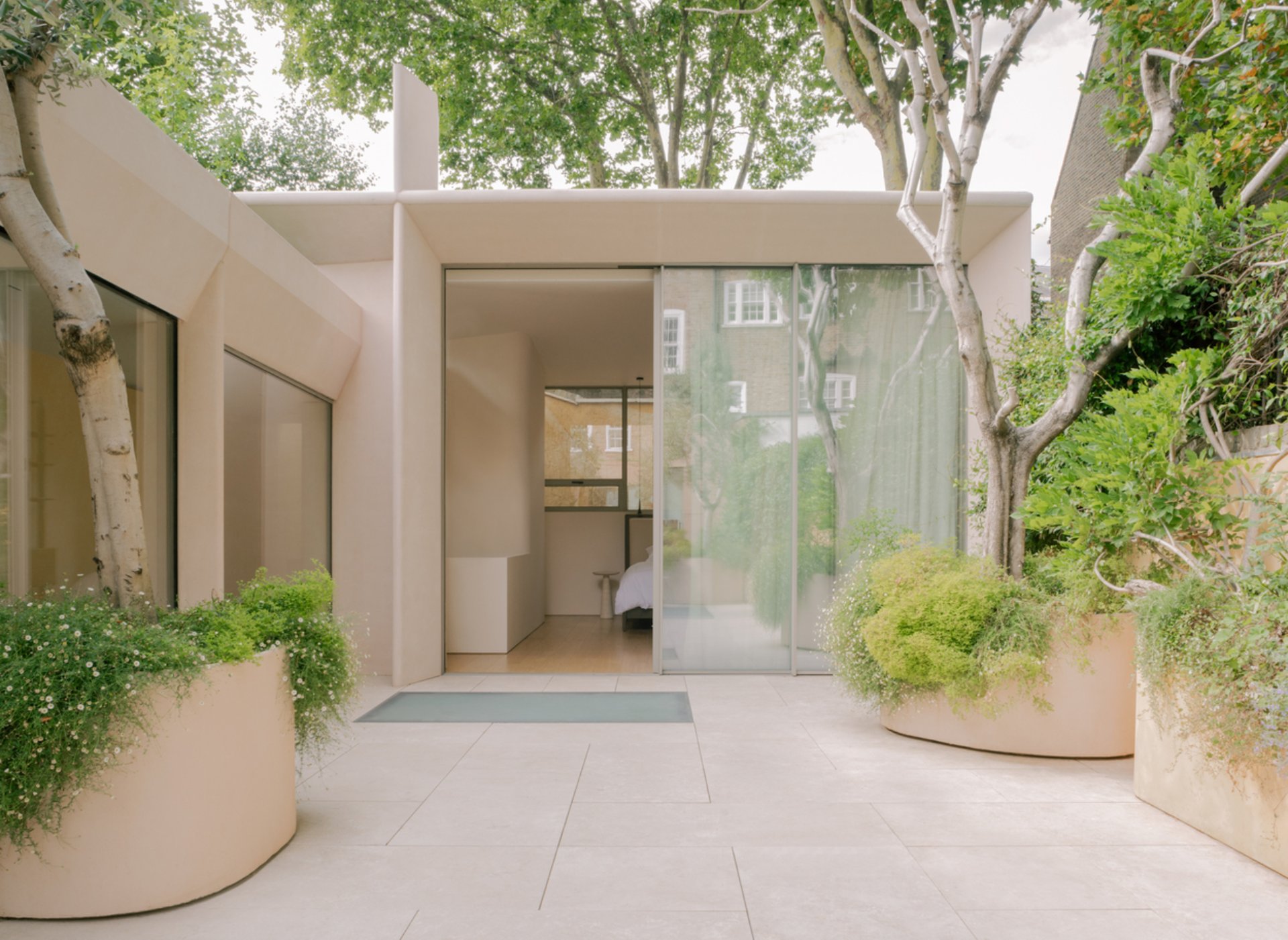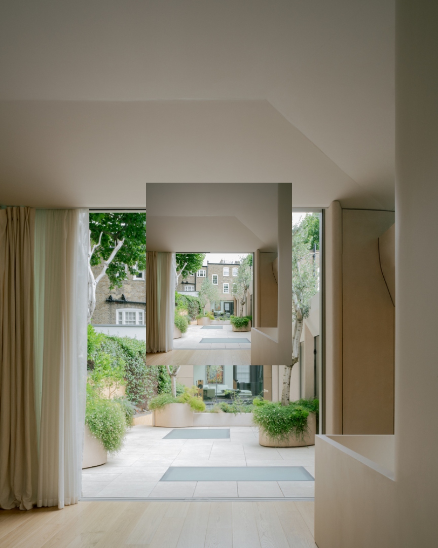 Η επέκταση χαρακτηρίζεται από λεπτομερή επεξεργασία, όπου η υφή, οι αναλογίες και το εναλλασσόμενο φως της ημέρας διαμορφώνουν την ατμόσφαιρα σε κάθε σημείο. Οι νέοι χώροι ενσωματώνονται μέσα σε μια «γλυπτική» εκσκαφή του ασυνήθιστα βαθύ κήπου στο πίσω μέρος του σπιτιού. Ωστόσο, διατηρείται η ακεραιότητα της ιστορικής γεωργιανής πρόσοψης και δημιουργείται ένα γαλήνιο, σύγχρονο αντίστιξη στην αρχική κατασκευή.