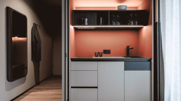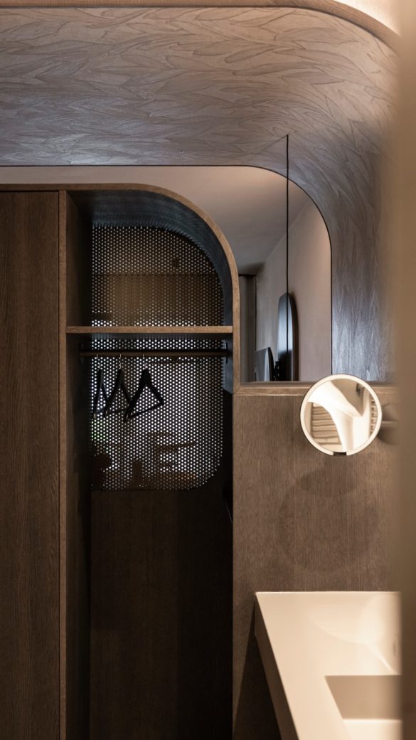 «Δεν προσεγγίσαμε το έργο από την οπτική γωνία των τυπικών διατάξεων επίπλων, αλλά με την ιδέα ότι κάθε δωμάτιο θα έπρεπε να γίνει ένας ιδιωτικός χώρος ευεξίας για τους επισκέπτες», εξηγεί ο Christian Rottensteiner, συνεργάτης του NOA και επικεφαλής αρχιτέκτονας του έργου.  «Ξεκινώντας από την οπτική γωνία των επισκεπτών, σχεδιάσαμε τους εσωτερικούς χώρους ώστε να αμφισβητούν τους συνηθισμένους διαχωρισμούς δωματίων: η επίπλωση ξεδιπλώνεται σε ένα ρευστό συνεχές, όπου τα όρια μεταξύ μπάνιου και χώρου ύπνου διαλύονται».