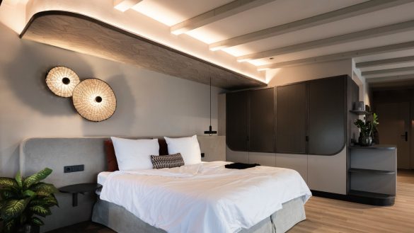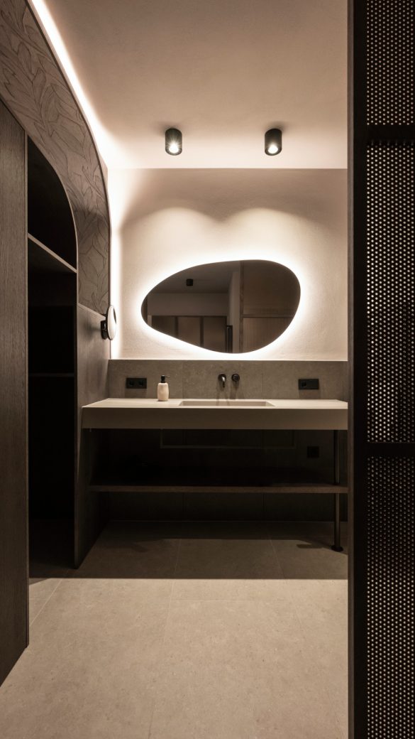 «Η ομορφιά του έργου αποκαλύπτεται στις λεπτομέρειες: μια πολυθρόνα από ύφασμα μπουκλέ που προσκαλεί για ήσυχο διάβασμα, ένα διάτρητο μεταλλικό παραβάν που παρέχει ιδιωτικότητα χωρίς να κλείνει τον χώρο, και ο απαλός φωτισμός που συνοδεύει τις πρώτες πρωινές ώρες. Κάθε γωνιά προσφέρει μια στιγμή ζεστής οικειότητας και προσωπικής ευεξίας», εξηγεί η Mara Jungmann, interior designer.