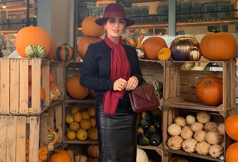 Φορώντας ένα υπέροχο outfit και με την Saint Laurent τσάντα της στο χέρι, η Salma Hayek αγόρασε τις δικές της κολοκύθες από το διασημότερο λονδρέζικο delicatessen, το Panzer’s, που λειτουργεί από το 1944.