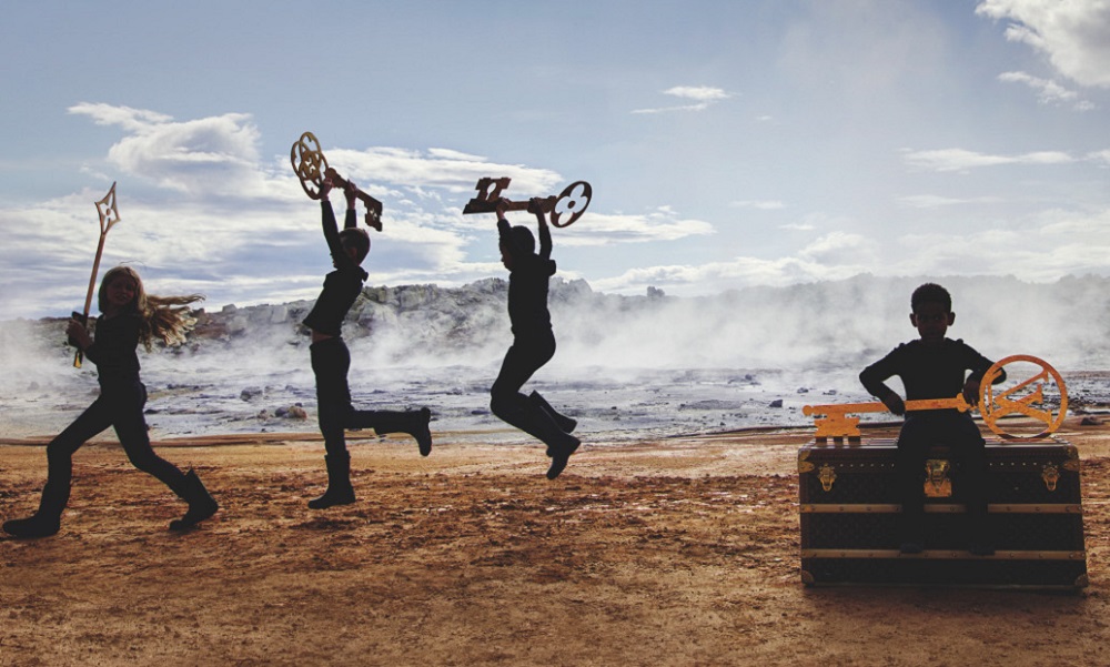 Στις συγκλονιστικές φωτογραφίες, παιδιά που κατοίκούν μόνιμα στην Ισλανδία πηδούν χαρούμενα με φόντο τα κύματα του ωκεανού και τα ηφαιστειογενή βουνά, καθώς κρατούν τα κλειδιά που ανοίγουν τα πολυτελη μπαούλα του οίκου.