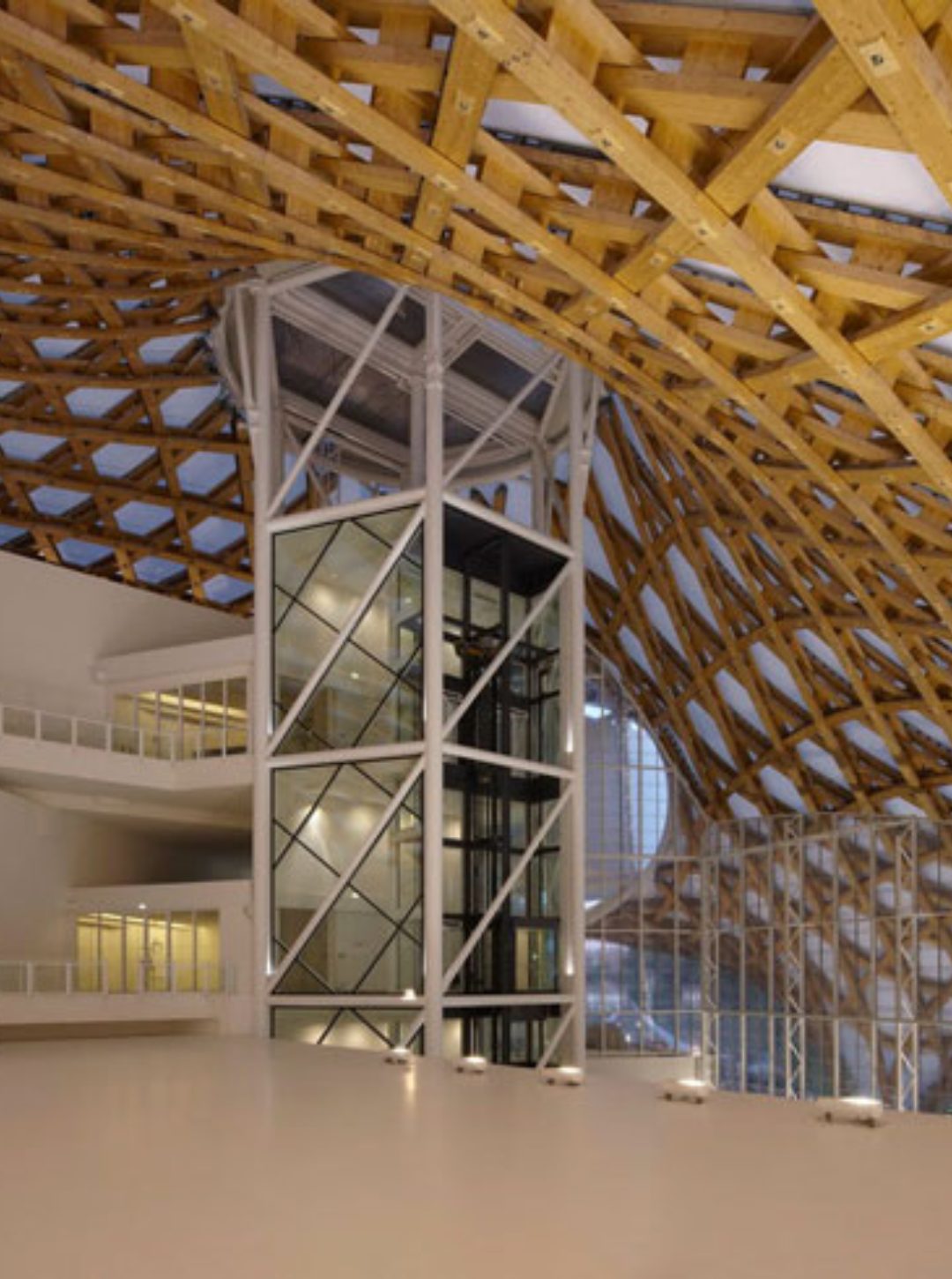 Το Centre Pompidou-Metz στην πόλη Μετς της Γαλλίας, αποτελεί ένα από τα πιο εμβληματικά έργα της σύγχρονης αρχιτεκτονικής. Η εντυπωσιακή ξύλινη, κυματοειδής στέγη του – εμπνευσμένη από την παραδοσιακή ιαπωνική αρχιτεκτονική και τη μορφή ενός υφαντού καλαθιού – απλώνεται ελαφρά πάνω από τον εκθεσιακό όγκο, δημιουργώντας μια αίσθηση κίνησης και διαφάνειας. Η σύνθετη ξύλινη κατασκευή, αποτέλεσμα προηγμένης τεχνολογίας και ακριβούς μηχανικής, συνδυάζει καινοτομία και λειτουργικότητα, προσφέροντας ένα φωτεινό, ευέλικτο και φιλόξενο περιβάλλον για την τέχνη.