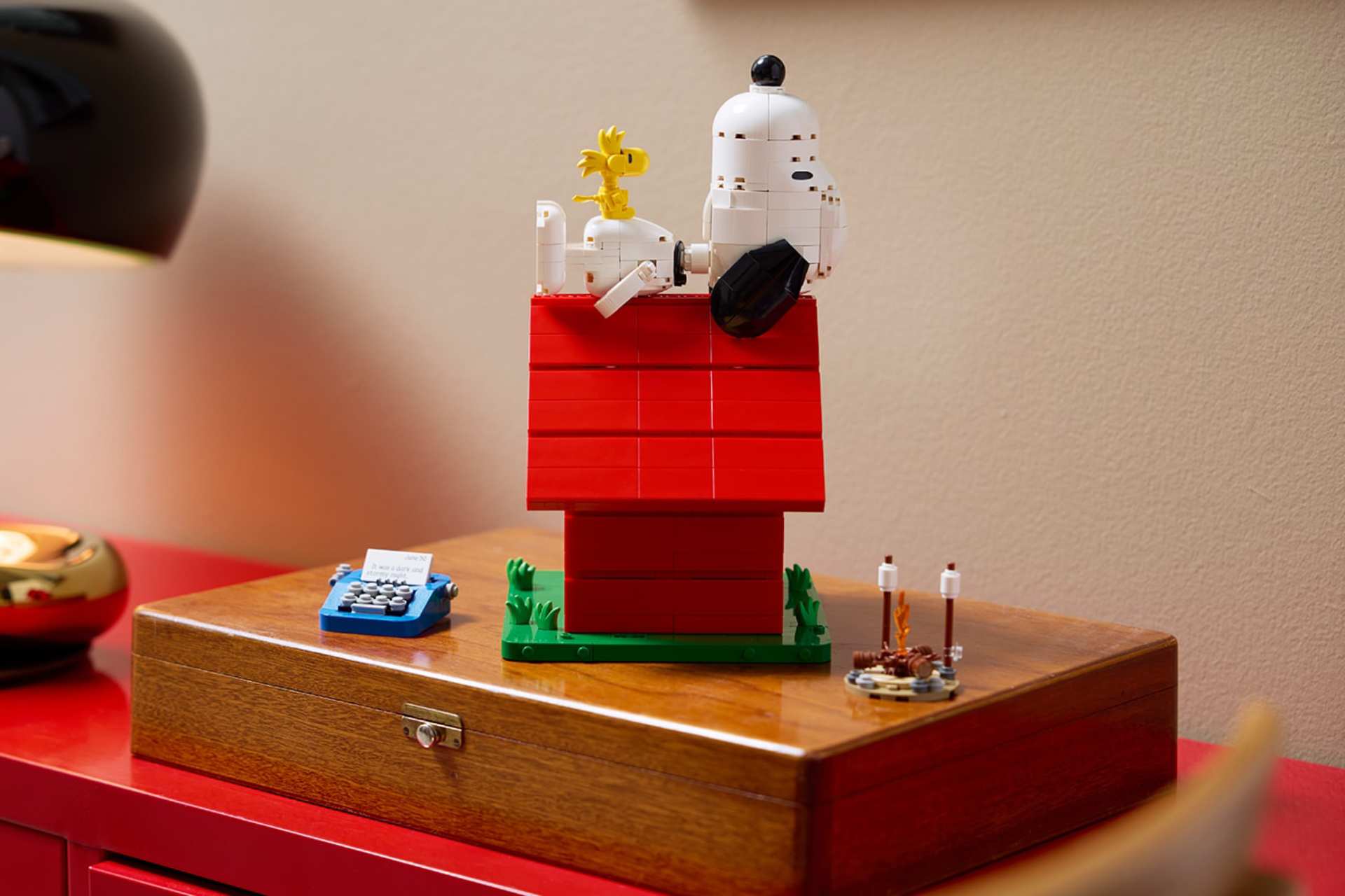 Το σετ των 964 κομματιών επικεντρώνεται στην αναπαράσταση του εμβληματικού κόκκινου σκυλόσπιτου του Snoopy, που λειτουργεί τόσο ως βάση για έκθεση όσο και ως διαδραστικό παιχνίδι. Το αστέρι του σετ είναι η φιγούρα του Snoopy, κατασκευασμένη από τουβλάκια και με δυνατότητα κίνησης, που συνοδεύεται από εναλλάξιμα πόδια ώστε να μπορεί να κάθεται στο γραφείο του με τη γραφομηχανή ή να ξαπλώνει στο πλάι ονειροπολώντας. Μαζί του βρίσκεται και ο Woodstock, επίσης κατασκευασμένος από τουβλάκια, για να παραμένει το διάσημο δίδυμο μαζί.