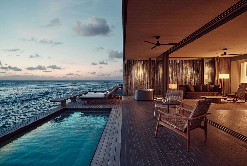 Το design studio MK27, led από τον βραζιλιάνο αρχιτέκτονα Marcio Kogan είχε στο μυαλό του πώς θα διατηρήσει τη φύση. Το resort Patina Maldives βρίσκεται σε μια παραλία πάνω στο νερό, όπου οι κομψότητα και οι λεπτές αρχιτεκτονικές γραμμές ευθυγραμμίζονται με τον ορίζοντα της θάλασσας. Ουδέτεροι τόνοι με ξύλο, πέτρα και οργανικά υφάσματα πρωταγωνιστούν και έρχονται σε απόλυτη αρμονία με το πράσινο και γαλάζιο τοπίο. Ο Kogan ήθελε με την αρχιτεκτονική να ενισχύσει την εμπειρία του εκπληκτικού περιβάλλοντος.