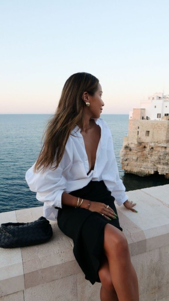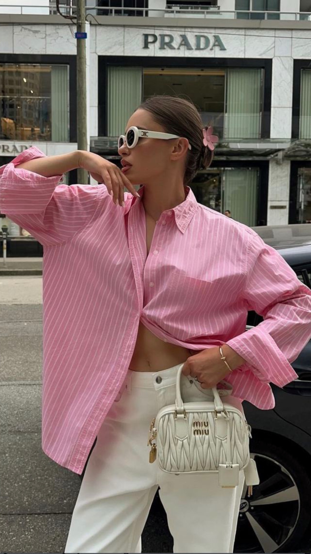 Το ίδιο πουκάμισο μπορεί εύκολα να μετατραπεί σε βραδινή επιλογή, αν αλλάξεις τον τρόπο styling. Ένα δεμένο πουκάμισο στη μέση ή ένα ελαφρώς ανοιχτό look μπορεί να δείξει πιο τολμηρό και σύγχρονο. Συνδυασμένο με σατέν φούστα ή ψηλόμεσο παντελόνι, αποκτά πιο elegant χαρακτήρα. Τα έντονα κοσμήματα και τα heels ολοκληρώνουν το outfit και το ανεβάζουν επίπεδο χωρίς προσπάθεια.