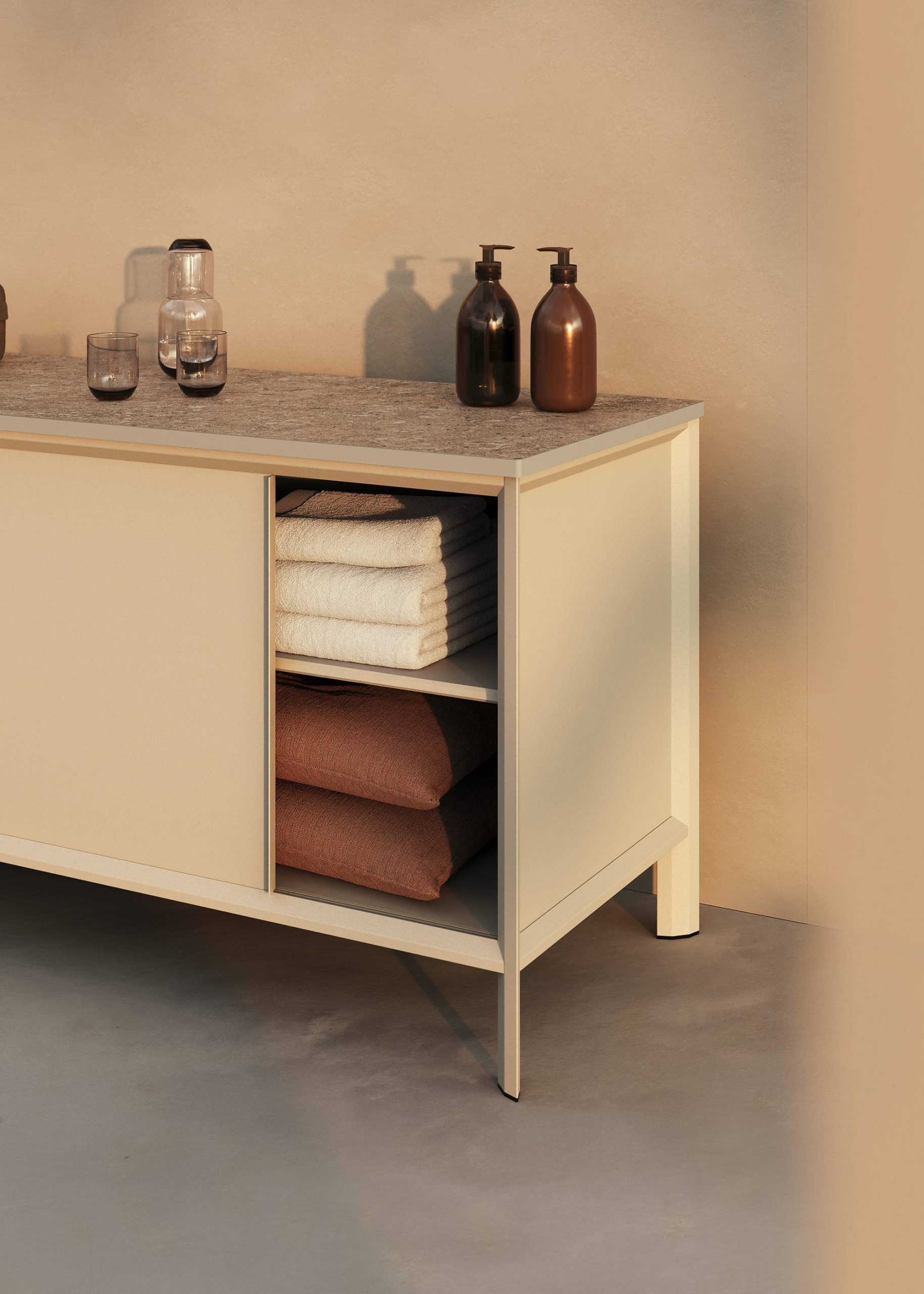 Η συλλογή διακρίνεται για τις καλοσχηματισμένες ακμές και τις πολύεδρες μορφές της, οι οποίες δημιουργούν ένα διακριτικό αλλά οπτικά ελκυστικό πλαίσιο, προσαρμόσιμο σε πολλαπλές διαμορφώσεις. Με επιφάνειες Dekton® και κατασκευασμένα 100% στην Ευρώπη, τα κομμάτια είναι ιδανικά για εξωτερικές κουζίνες, ως λύσεις αποθήκευσης και υποστηρικτικά έπιπλα για εστιατόρια, βεράντες και χώρους πισίνας σε έργα contract, αλλά ταιριάζουν εξίσου και σε εσωτερικούς χώρους.