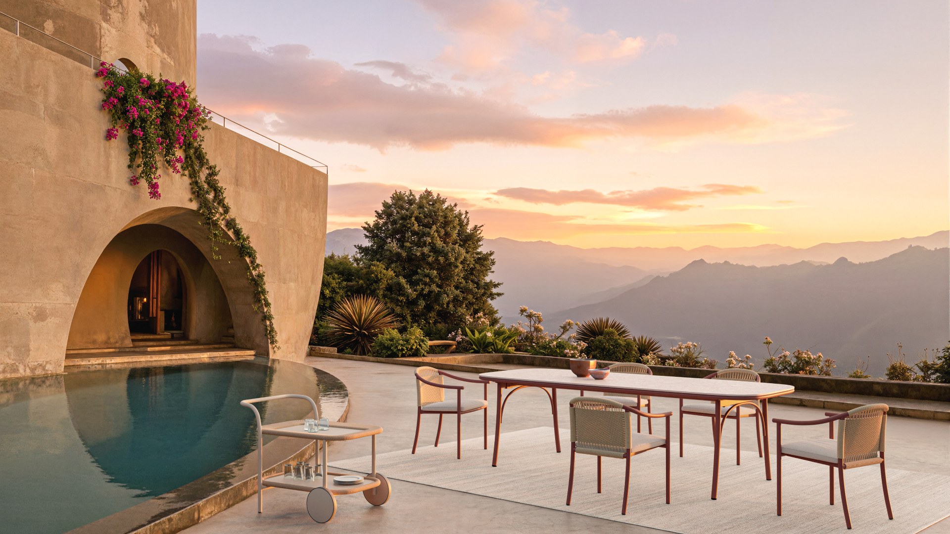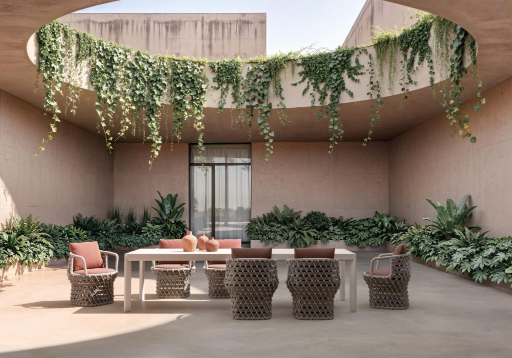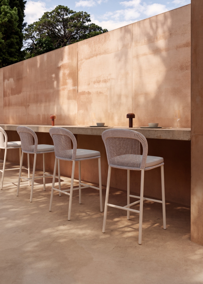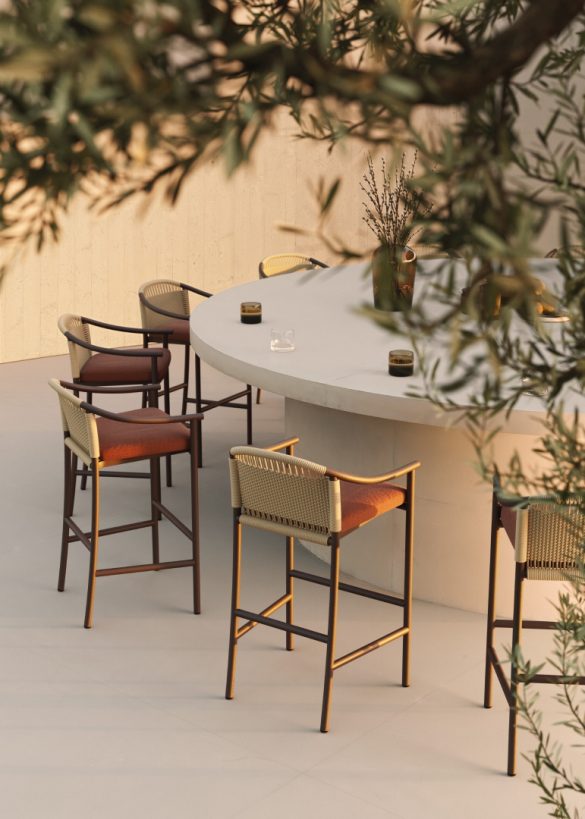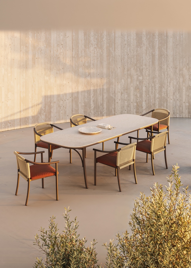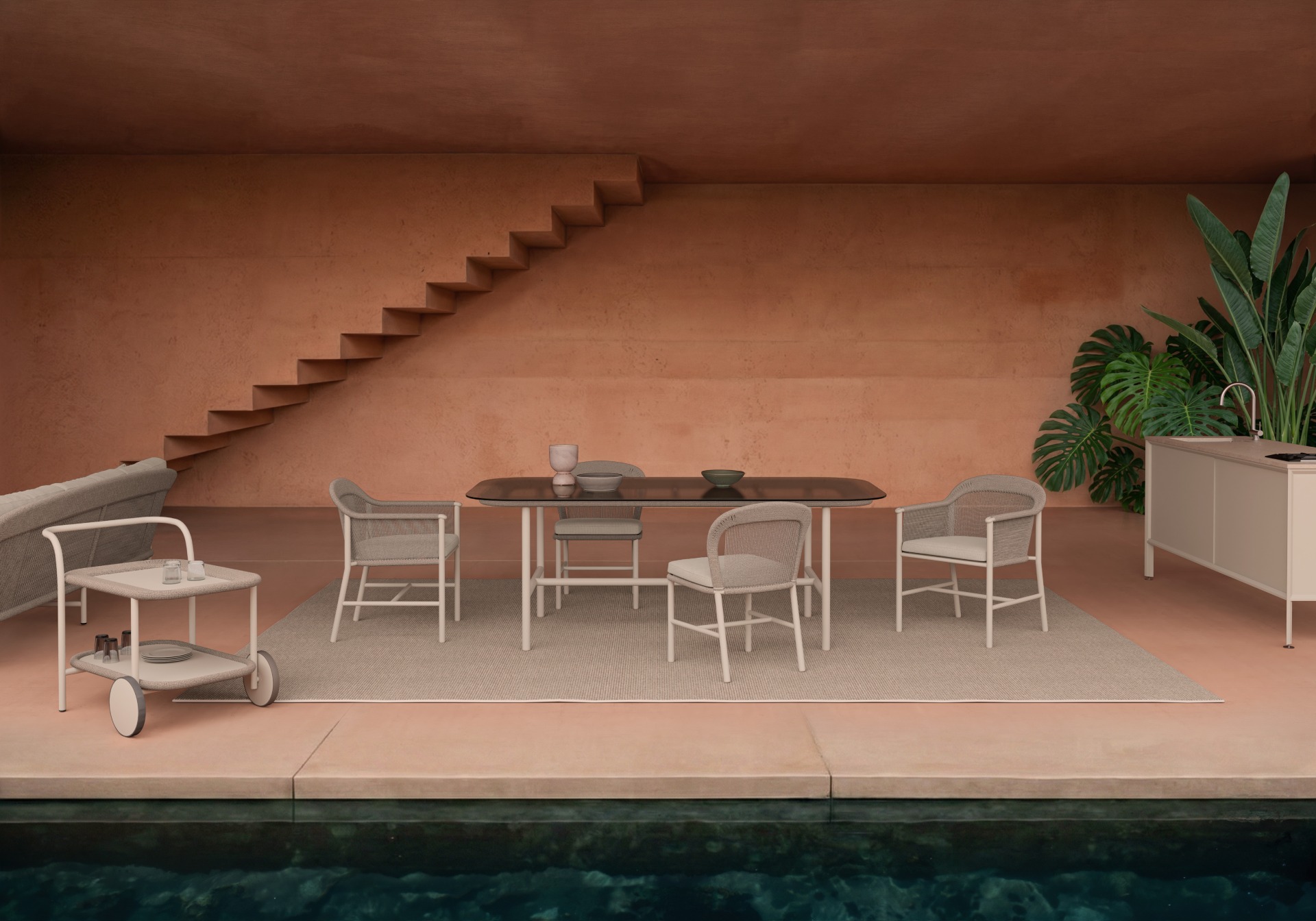 Σχεδιασμένη για να δημιουργεί μια κομψή και δροσερή ατμόσφαιρα – που εκτείνεται από την τραπεζαρία και το σαλόνι μέχρι την πισίνα – η συλλογή διακρίνεται για τη χειροποίητη πλέξη της που παραπέμπει στα κλασικά στοιχεία του μακραμέ. Εξισορροπώντας μια δομή από σωλήνες αλουμινίου με τη ζεστασιά του πλεκτού σχοινιού και των μαλακών μαξιλαριών, η Arata προσδίδει έναν σοφιστικέ και σύγχρονο χαρακτήρα σε κάθε εξωτερικό χώρο, μέσα από ένα ισορροπημένο μείγμα εκλεπτυσμένων, διακριτικών αλλά και εντυπωσιακών στοιχείων. Όλα αυτά την καθιστούν μια εξίσου ελκυστική επιλογή και για εσωτερικούς χώρους.