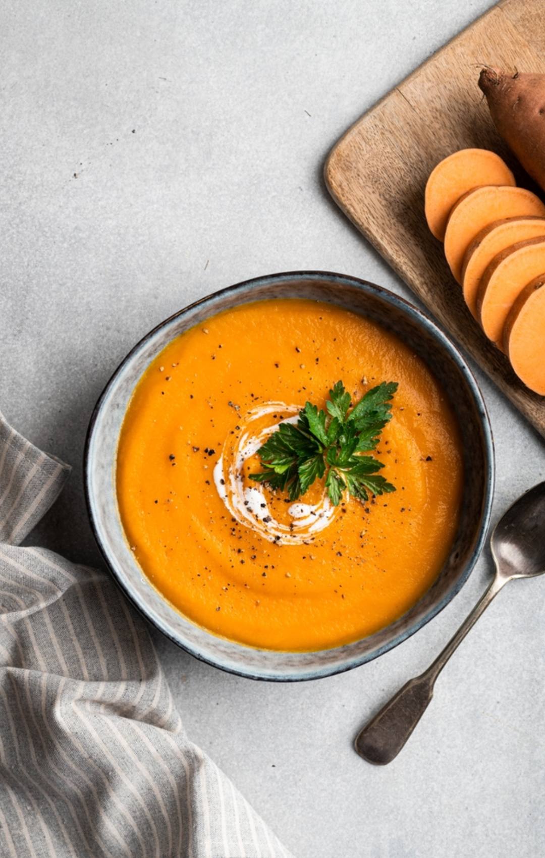 Γιατί αξίζει: Η γλυκοπατάτα είναι πλούσια σε φυτικές ίνες, κάλιο και β-καροτένιο, συμβάλλοντας στον κορεσμό και στη σωστή λειτουργία του ανοσοποιητικού. Πρόκειται για μια σούπα με φυσική γλυκύτητα, χωρίς ανάγκη για κρέμα ή βούτυρο, που ταιριάζει σε όλες τις εποχές.