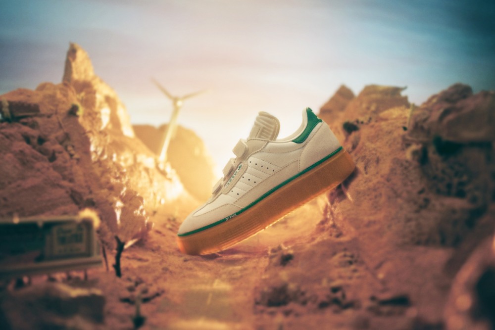 Το αθλητικό DNA του brand διατρέχει τα Adidas x Ivy Park sneakers, καθώς είναι εμπνευσμένα από τα παπούτσια Samba της Adidas. Τα Super Sleek, κατασκευασμένα από δέρμα, σε στυλ πλατφόρμας, συνδυάζουν γήινα χρώματα, σε αποχρώσεις του μπεζ και του πράσινου.