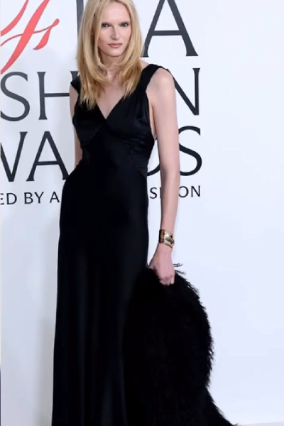 Ένα μακρύ, μαύρο, σατινέ φόρεμα με βαθύ ντεκολτέ σε σχήμα V και στενή, κομψή γραμμή επέλεξε η Alex Consani για τα CFDA Awards του 2025, δια χειρός Michael Kors. Το σύνολο ολοκληρώθηκε με ένα χρυσό βραχιόλι και ίσια μαλλιά, για ένα απλό αλλά εντυπωσιακό look.