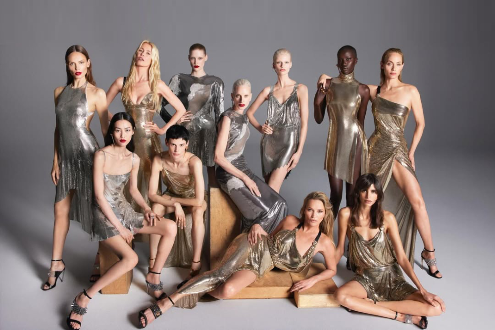 Οι Claudia Schiffer, Kate Moss, Kristen McMenamy, Amber Valletta, Natasha Poly, Saskia de Brauw, Liu Wen, Mica Argañaraz, Anok Yai, Mila Van Eeten και Jacqui Hooper εμφανίζονται στην καμπάνια του φθινοπώρου 2025. Φωτογραφήθηκαν από τους Mert & Marcus, που είναι επίσης στενοί συνεργάτες της Versace.