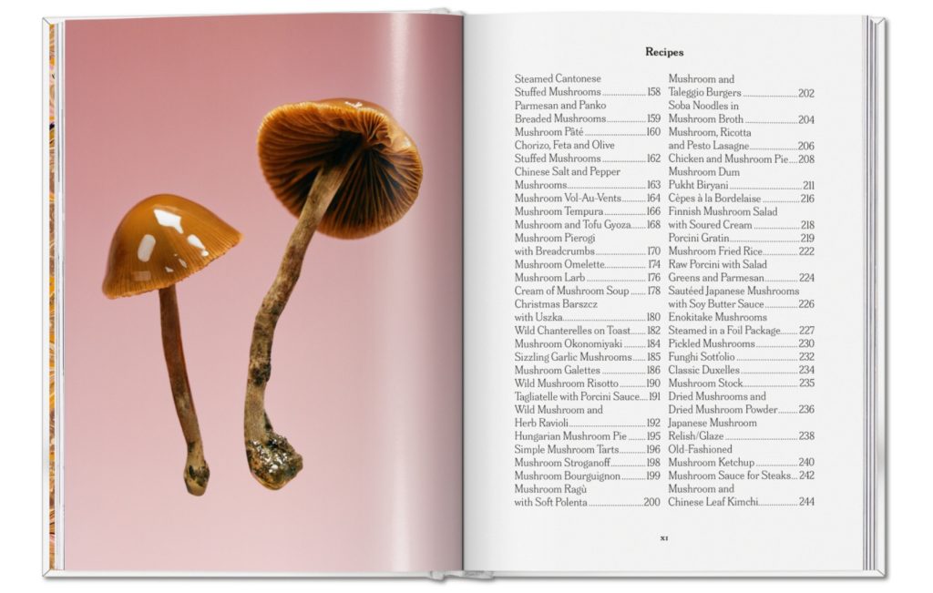 Παράλληλα με τα κείμενα, υπάρχει μια εκτενής συλλογή πρωτότυπων συνταγών, που αποθεώνουν τα μανιτάρια σε όλη τη γήινη, πλούσια σε umami δόξα τους. Από λεπτεπίλεπτα καντονέζικα γεμιστά μανιτάρια και τραγανή τέμπουρα, μέχρι πιρόσκι, ριζότο, συνοδευτικά τύπου ράμεν, ραβιόλι με άγρια μανιτάρια, κλασικό ντουξέλ (duxelles) και παραδοσιακό κέτσαπ μανιταριών.