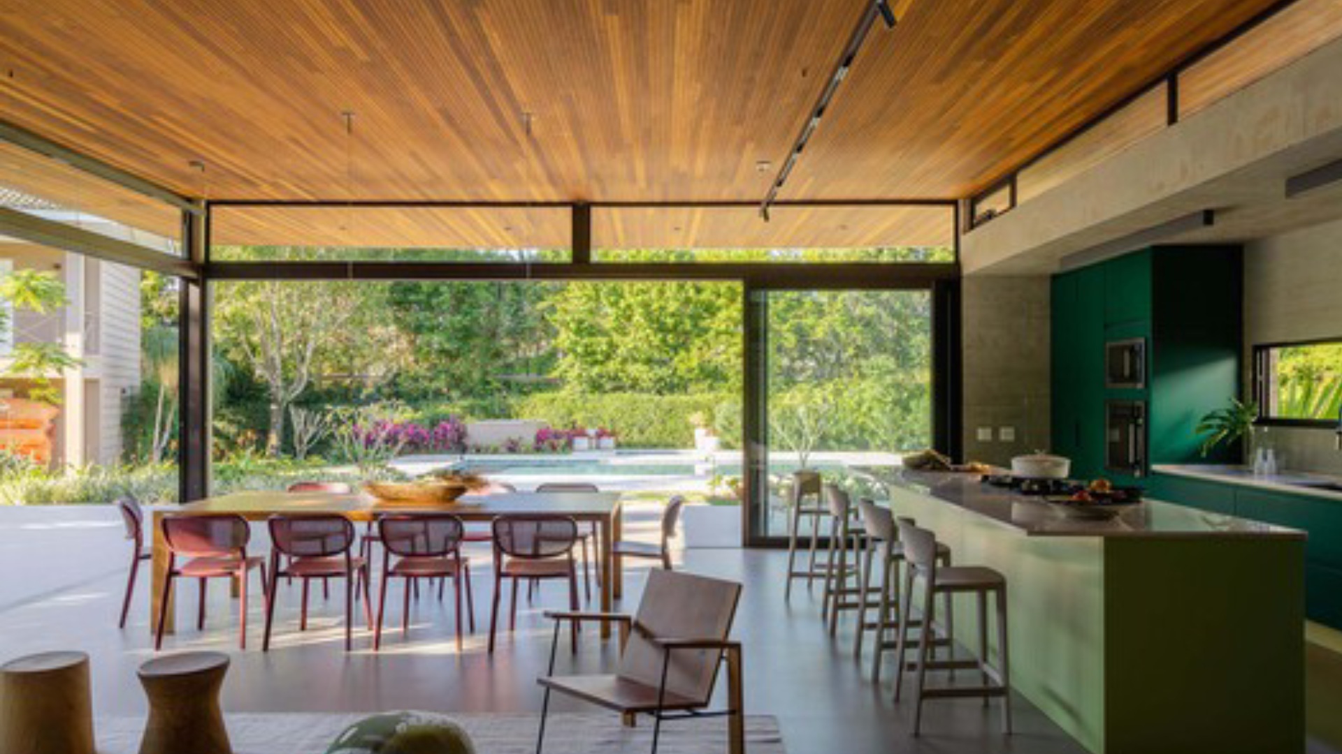 Σε αυτό το σημείο, ο κήπος παύει να είναι ένα απλό φόντο και γίνεται άμεση προέκταση της αρχιτεκτονικής.