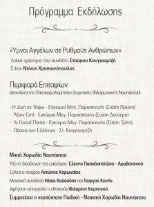 Πριν φτάσει η πομπή στο λιμάνι, η Μικτή Χορωδία Ναυπάκτου ερμηνεύει το λαϊκό ορατόριο «Ύμνοι Αγγέλων σε Ρυθμούς Ανθρώπων» του Σταύρου Κουγιουμτζή σε στίχους του Ντίνου Χριστιανόπουλου, ενώ στη συνέχεια αποδίδει τα παραδοσιακά Εγκώμια της Μεγάλης Παρασκευής υπό τη διεύθυνση της μαέστρου Ελένης Παπαδοπούλου-Αραβαντινού. Φέτος, η βραδιά περιλαμβάνει και συμμετοχή της Παιδικής-Νεανικής Χορωδίας Ναυπάκτου, του σολίστ τενόρου Αντώνη Κορωναίου και των μουσικών Ηλία Καλούδη και Γιώργου Κονή. Η ηθοποιός Φιλαρέτη Κομνηνού απαγγέλει ποιήματα, προσθέτοντας μια μοναδική δραματική διάσταση στη βραδιά.