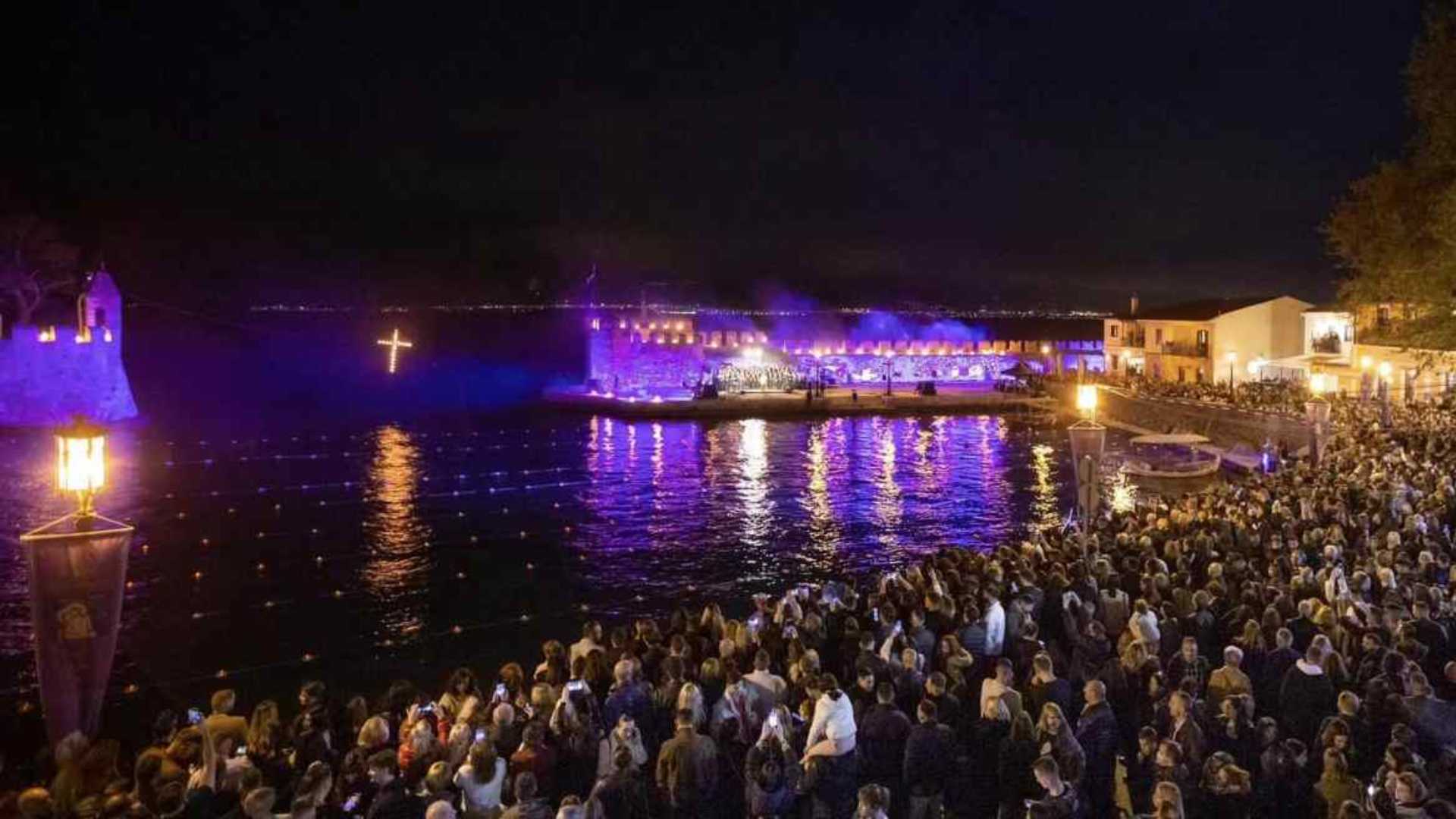 Φέτος στη Ναύπακτο, η Μεγάλη Παρασκευή αποκτά μια μαγική ατμόσφαιρα που καθηλώνει ντόπιους και επισκέπτες. Η πόλη, με το ιστορικό της κέντρο και το Ενετικό Λιμάνι, μετατρέπεται σε σκηνικό βαθιάς κατάνυξης, όπου η παράδοση, η μουσική και η φωτιστική ατμόσφαιρα συνυπάρχουν με έναν μοναδικό τρόπο. Οι αναμμένες δάδες στις πολεμίστρες και ο φλεγόμενος σταυρός στην είσοδο του λιμανιού δημιουργούν εικόνες που μένουν ανεξίτηλες στη μνήμη.