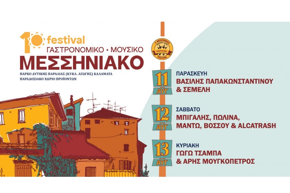 Το 1ο Μεσσηνιακό Γαστρονομικό και Μουσικό Φεστιβάλ κλείνει ραντεβού στις 11, 12 και 13 Αυγούστου, με μουσικές βραδιές και τοπικά εδέσματα.