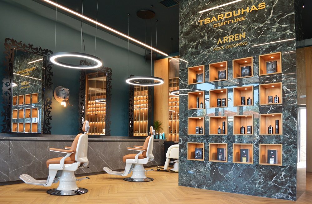 Ένα ισόγειο κατάστημα επιφάνειας 75 τ.μ. κλήθηκε να γίνει ο χώρος στον οποίο θα φιλοξενείται το νέο Hair Salon Tsarouhas. Ακολουθήθηκε ένα σύγχρονο σχεδιαστικό λεξιλόγιο με σκοπό την κάλυψη των λειτουργικών αναγκών των πελατών. Ως στόχο είχε τη δημιουργία ενός ζεστού και σύγχρονου χώρου. Σημαντική προσοχή δόθηκε στην επιλογή των υλικών – μέταλλο, πράσινο μάρμαρο, currogated glass και ξύλο σε απόχρωση δρυός- αλλά και στην κατασκευή των επίπλων. Παράλληλα, ο ατμοσφαιρικός φωτισμός ευνοεί την αίσθηση χαλάρωσης και προσδίδει στον χώρο έναν statement και φιλόξενο χαρακτήρα.