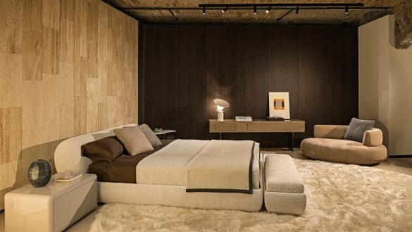 Γίνεται ένα ξεχωριστό αρχιτεκτονικό χαρακτηριστικό και το ιδανικό σκηνικό για πολλά bestsellers και βασικά κομμάτια από τη Συλλογή 2025, συμπεριλαμβανομένου του συστήματος καθιστικού Coupé, των πολυθρόνων Laurel και Libra, όλα από τον Giampiero Tagliaferri, παράλληλα με το σύστημα καθιστικού Riley του Hannes Peer.