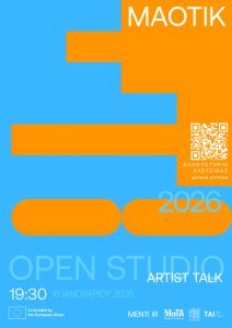 Στο πλαίσιο της καλλιτεχνικής του φιλοξενίας στην Ελευσίνα, ο ΜΑΟΤΙΚ ανοίγει το εργαστήριό του στο κοινό την Πέμπτη 16 Ιανουαρίου (ώρα προσέλευσης: 19:30), προσκαλώντας το κοινό σε ένα Open Studio που θα συνοδευτεί από ομιλία. Η εκδήλωση δίνει τη δυνατότητα στους επισκέπτες να συμμετάσχουν ενεργά στη δημιουργική διαδικασία και να παρακολουθήσουν από κοντά τα στάδια εξέλιξης του έργου «Transition to 8: European societies in flux».