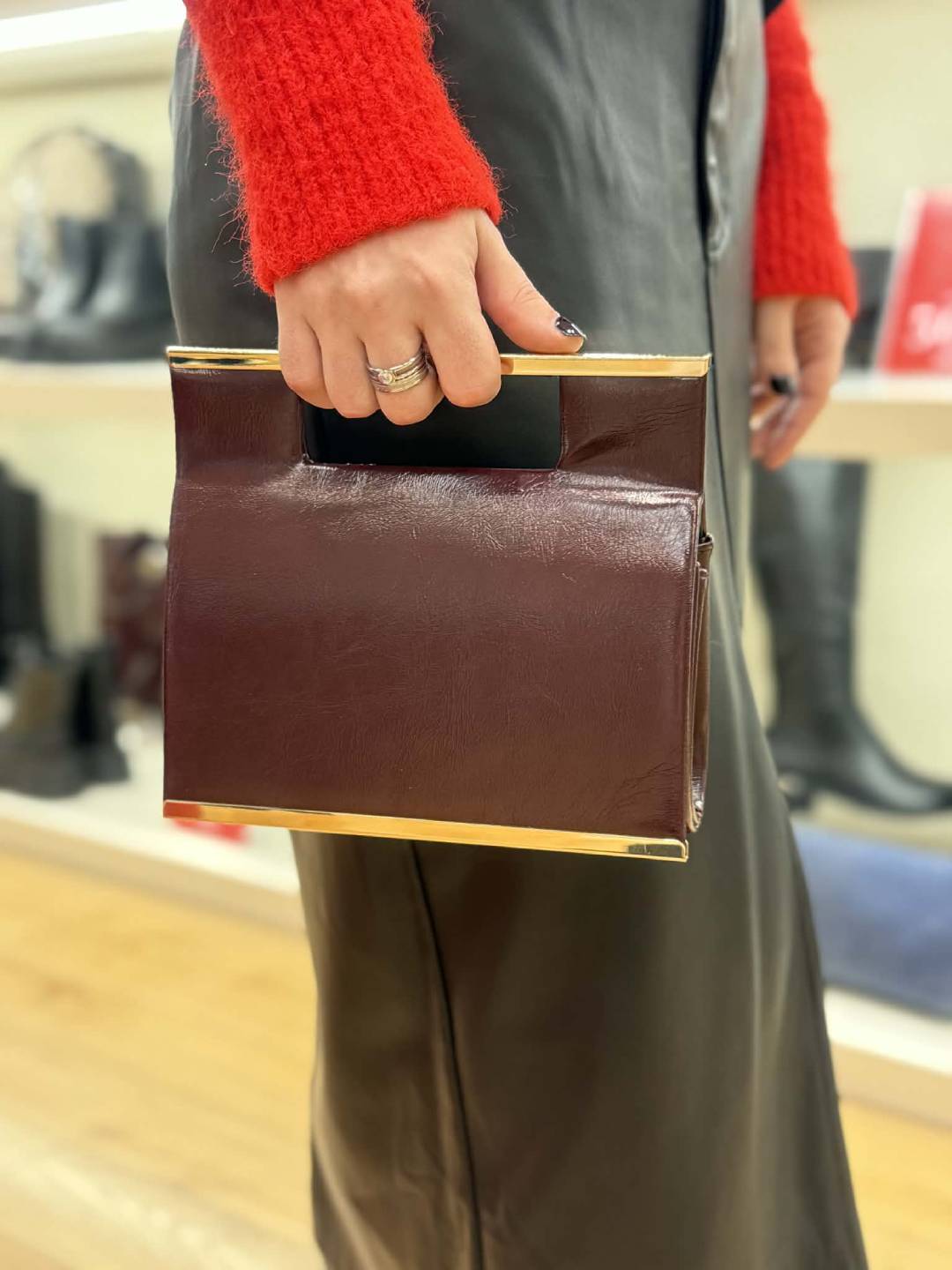 Τα αξεσουάρ είναι οι λεπτομέρειες που θα δώσουν ξεχωριστό χαρακτήρα στην εμφάνισή σας. Στο κατάστημα exé θα βρείτε την κομψή τσάντα σε burgundy απόχρωση με χρυσές μεταλλικές λεπτομέρειες, που θα προσθέσει μία νότα πολυτέλειας στο σύνολό σας!