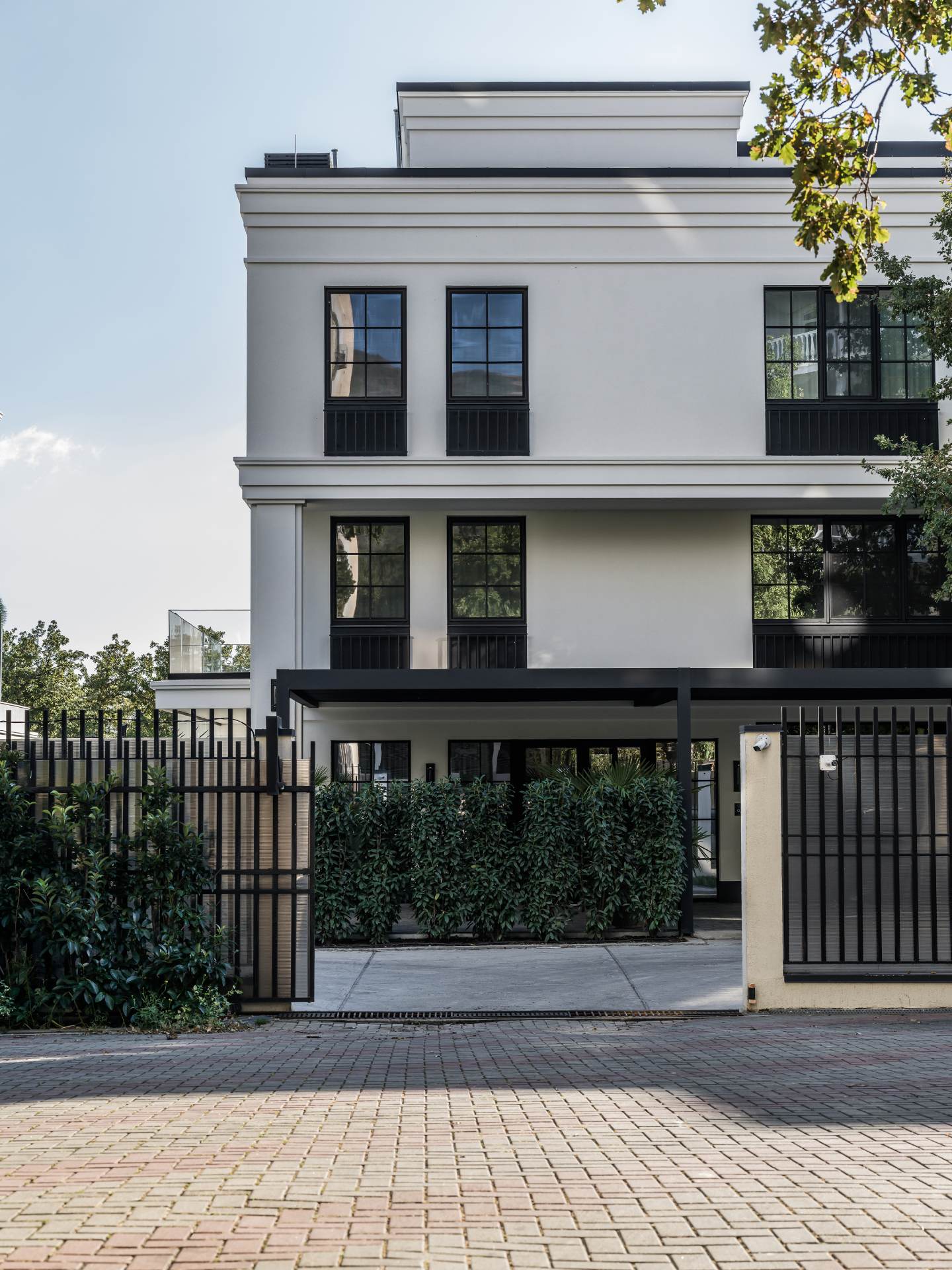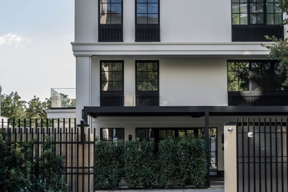 Η αρχιτεκτονική, βασισμένη σε ένα σύγχρονο μεσογειακό στυλ, διαθέτει καθαρές γραμμές, επίπεδες ταράτσες και γεωμετρικούς όγκους από ανοιχτόχρωμο σοβά και φυσική πέτρα. Τα πανοραμικά παράθυρα ενώνουν το εσωτερικό με το τοπίο, μετατρέποντας τη θέα στη θάλασσα σε ένα δυναμικό, διαρκώς μεταβαλλόμενο έργο τέχνης.