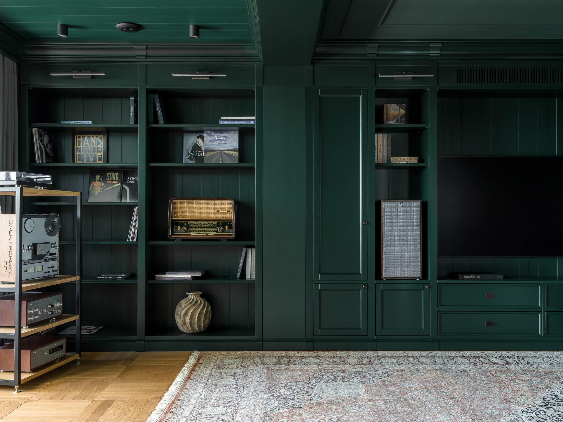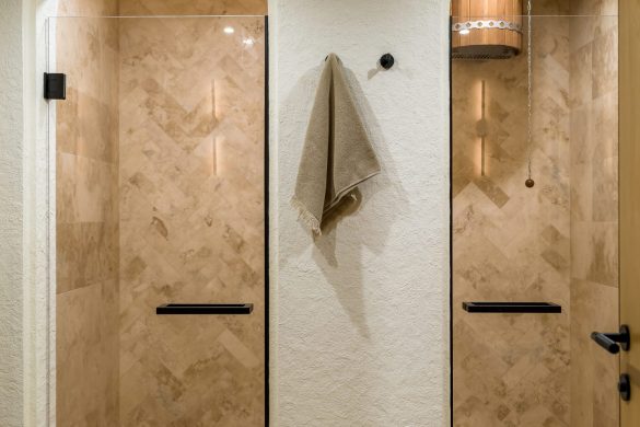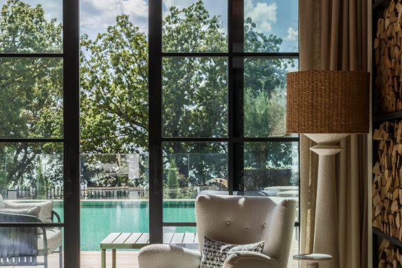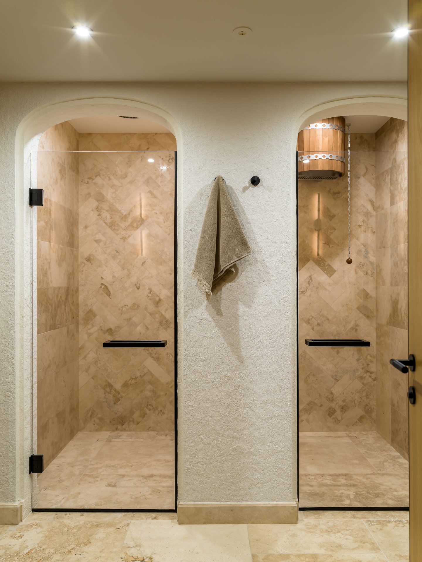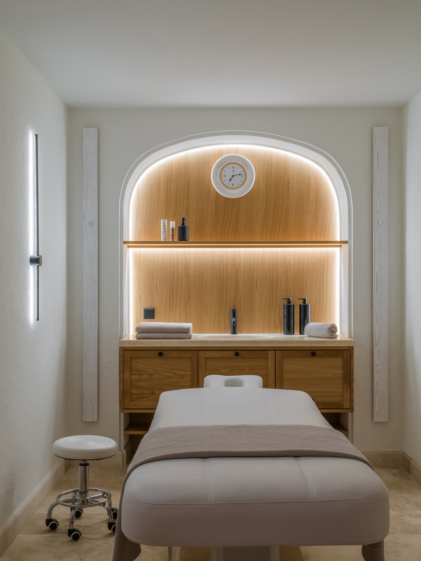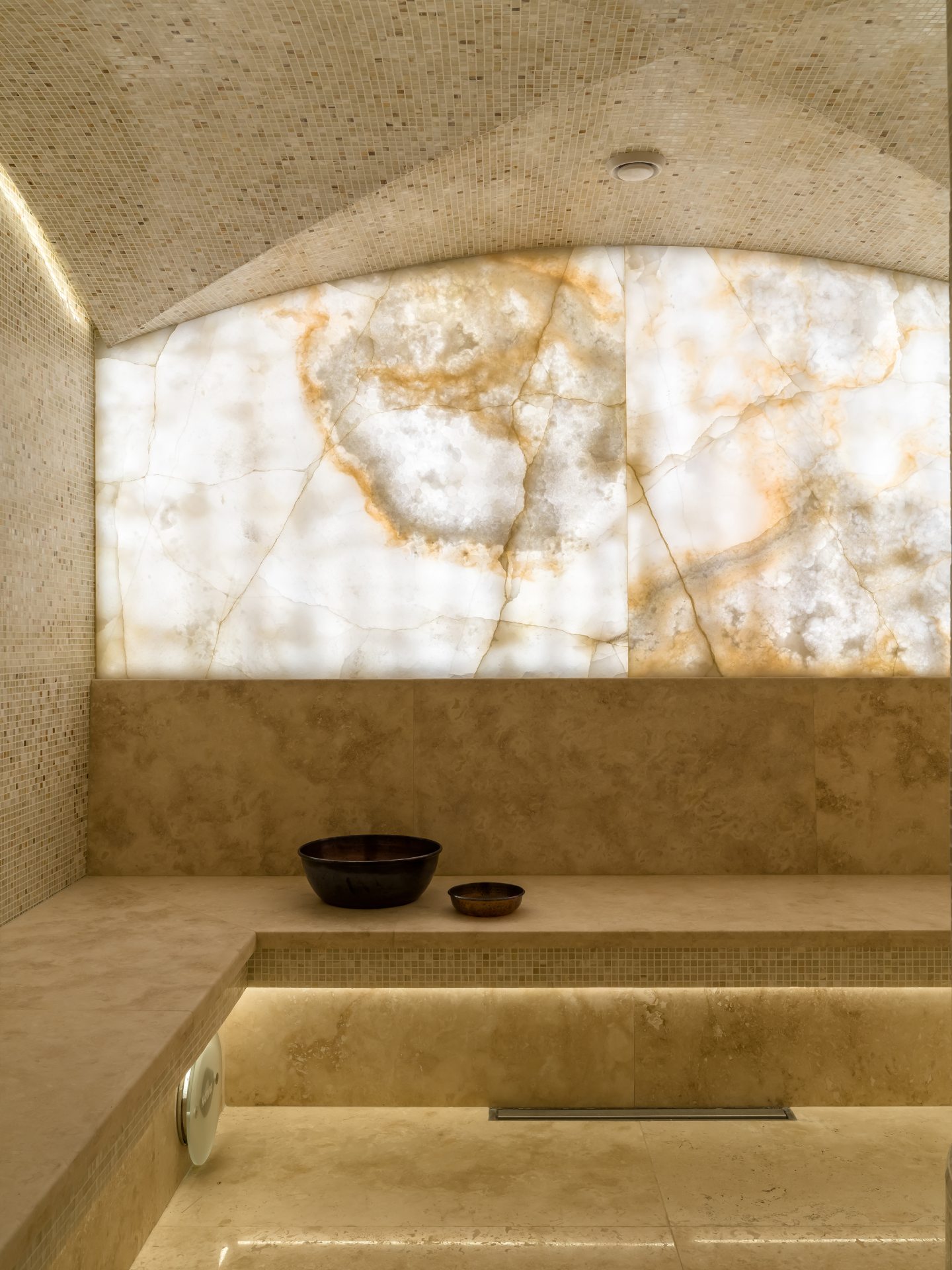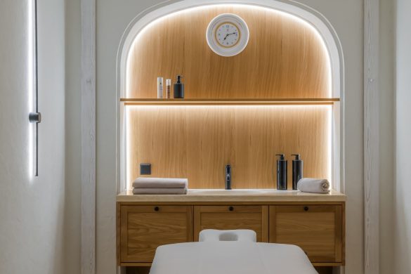 Το spa είναι ένα ιδιωτικό καταφύγιο με χαμάμ, σάουνα και αίθουσα μασάζ. Αντίθετα, το γραφείο ακολουθεί ένα κλασικό στυλ που θυμίζει αγγλική λέσχη, με μια βαθιά σμαραγδένια βιβλιοθήκη και ρετρό εξοπλισμό βινυλίου.
