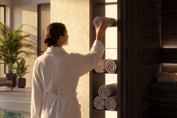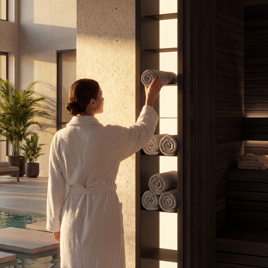 Εξωτερικά, το WellGate μπορεί να εξοπλιστεί με το αξεσουάρ Lama, σχεδιασμένο για την ανοιχτή αποθήκευση πετσετών, αιθέριων ελαίων ή προσωπικών αντικειμένων των επισκεπτών. Κατασκευασμένο από μέταλλο, διαθέτει τμήμα με καθρέφτη ή ενσωματωμένο φωτισμό. Οι πάγκοι μπορούν να παραδοθούν είτε με επένδυση είτε με φινίρισμα σε χρώματα RAL, επιτρέποντας περαιτέρω προσαρμογή σύμφωνα με το συνολικό σχεδιαστικό όραμα.