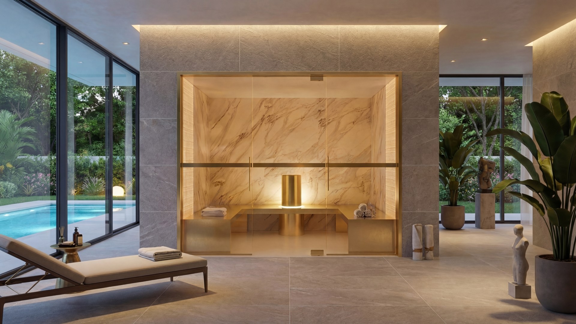 Τα διάφορα εξαρτήματα που απαρτίζουν το WellGate στεγάζονται σε μια δομή που χαρακτηρίζεται από ενσωματωμένο φωτισμό και έναν ξεκάθαρα ουσιαστικό, μινιμαλιστικό σχεδιασμό, ο οποίος αναπτύσσεται μέσα από μια γλώσσα επαναλαμβανόμενων οριζόντιων γραμμών. Αυτό αποδεικνύεται από το σύστημα αλληλοσυνδεόμενων ξύλινων πηχών που ορίζει το περιβάλλον της σάουνας και μπορεί επίσης να ενσωματωθεί με φωτισμό LED. Από τους φωτεινούς δακτυλίους των κυλινδρικών στοιχείων ατμού και πάγου και από τις λεπτομέρειες πρόσβασης, που επιλύονται μέσω ενός γυάλινου τοίχου με συντονισμένα πλαίσια και λαβές από βαμμένο μέταλλο και πολυουρεθάνη.